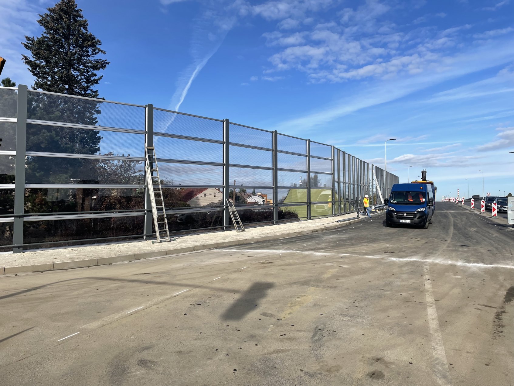 Transparentní protihluková stěna Roudnice, nová komunikace